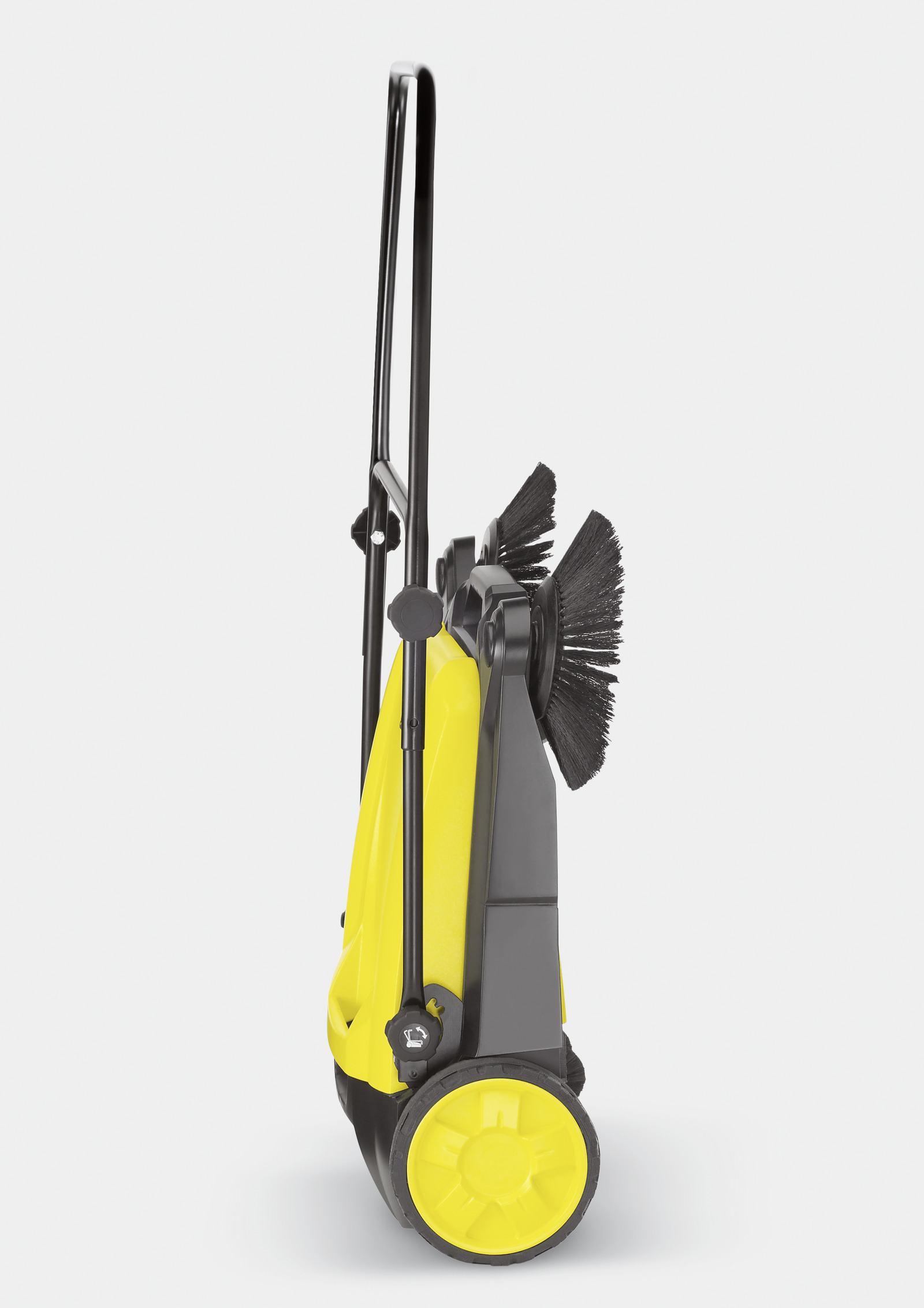 С помощью складной ручки подметальную машину можно хранить вертикально, занимая очень мало места.